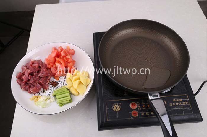 1.牛肉切塊,芹菜洗凈后切段,西紅柿洗凈后切塊,土豆去皮后切塊;
