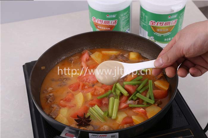 5.最后加入芹菜、西紅柿、金鑼高湯,煮沸后小火燜煮5-10分鐘即可。