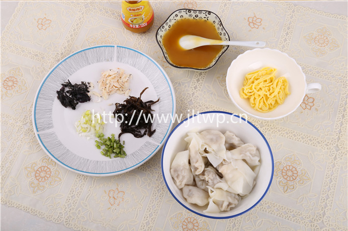 3.將煮熟的餛飩撈出加入到?jīng)_好雞汁的湯碗中,將稱量好的佐料加入湯中,滴入香油即可。