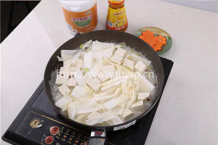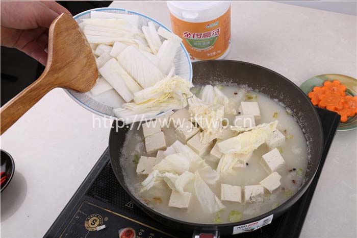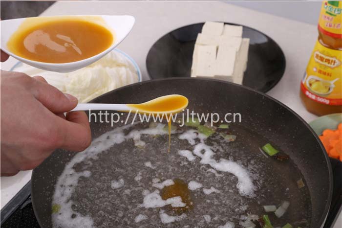 2.鍋內(nèi)加水,煮沸后加入金鑼原汁雞骨高湯、金鑼雞汁等主料;
